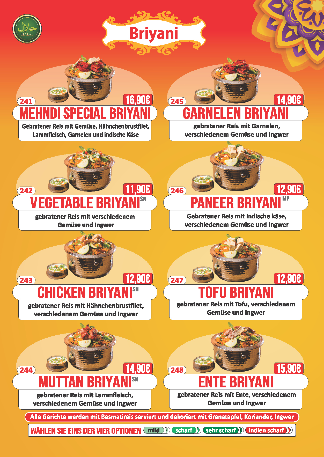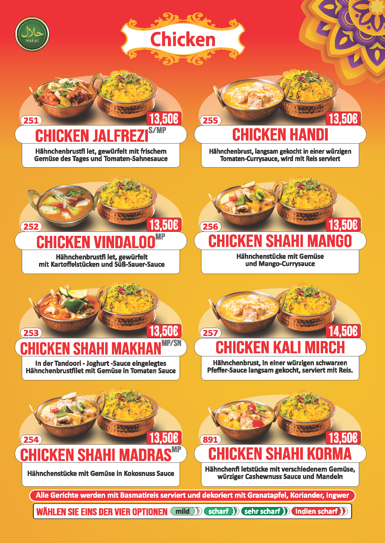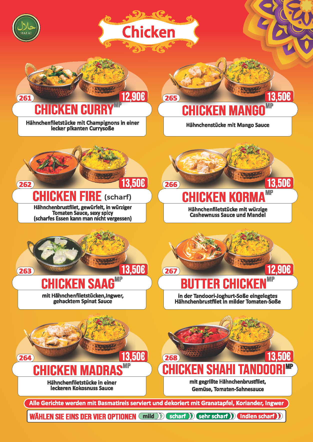 Unsere Speisekarte bietet eine breite Palette von köstlichen Gerichten, die von erfahrenen Köchen zubereitet werden, die die Geheimnisse der indischen Gewürze und Aromen beherrschen. Unser Ziel ist es, Ihren Gaumen zu verwöhnen und Ihnen eine unvergessliche kulinarische Reise zu ermöglichen.