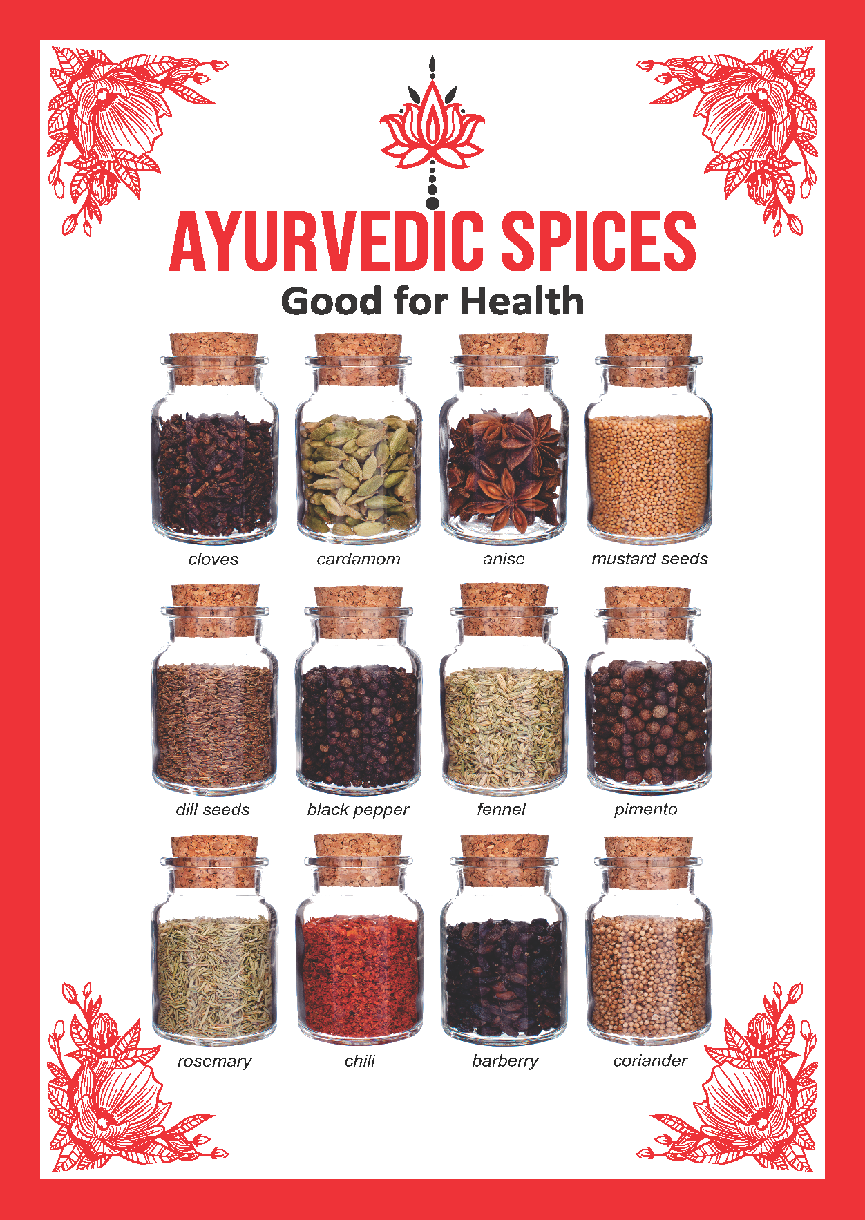 Die wichtigen Bestandteile einer gesunden Ernährung in ayurvedischen Lebensmitteln wirken vorbeugend, unterstützen die Verdauung und steigern den Genuss. Die ayurvedische Ernährung entgiftet den Körper und aktiviert die Selbstheilungskraft. Die ayurvedische Ernährung lehrt, dass jedes Ungleichgewicht im Körper und in der Seele ein Problem darstellt und Krankheiten verursacht. Grundlage für ayurvedische Ernährung: Nach der Kunst des Heilens werden Menschen den fünf Elementen Raum, Wasser, Erde, Luft und Feuer zugeordnet. Vata gilt als Lebensenergie und enthält Luft und Raum. Kapa sorgt für Wachstum, Flexibilität und korrekte Körperstruktur. Galle ist für den Stoffwechsel und die Verdauung verantwortlich und besteht aus Feuer und Wasser. Ayurveda-Gerichte sollten immer zusammen gegessen werden. Unsere Gerichte werden immer liebevoll zubereitet. Gewürze sind wichtig für Körper und Seele. Zehn königliche Gewürze: Nelken, Kurkuma, Ingwer, Kardamom, Koriander, Kreuzkümmel, Muskatnuss, schwarzer Pfeffer, Safran, Zimt.